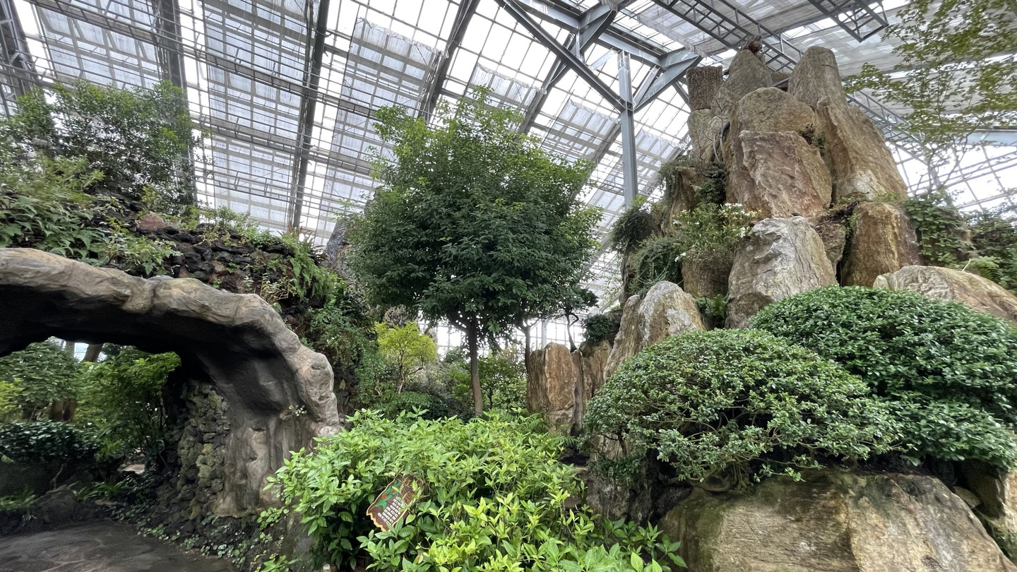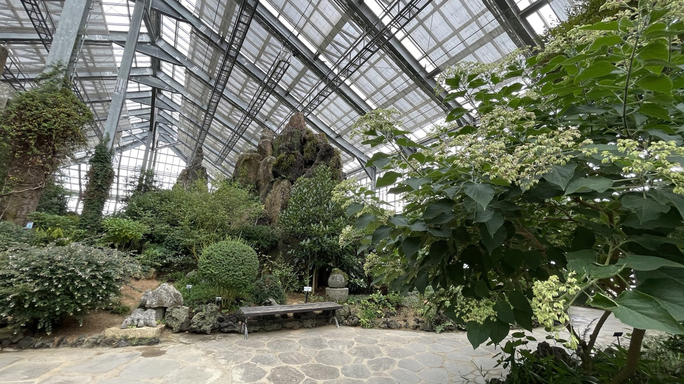 사계절 온실 내부에는 다양한 식물들이 자라고 있습니다.