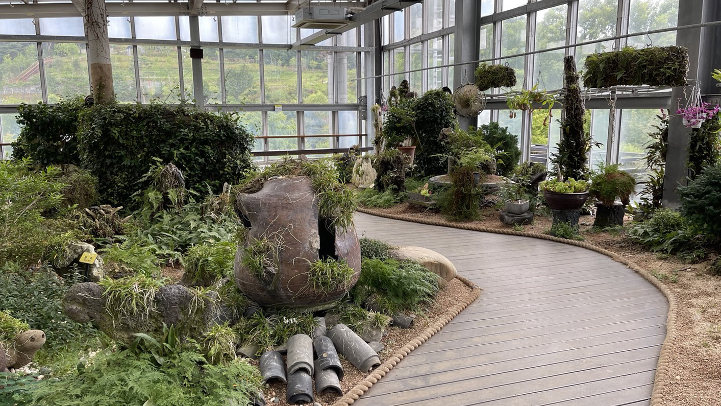 사계절 온실 내부에는 다양한 식물들이 자라고 있습니다.