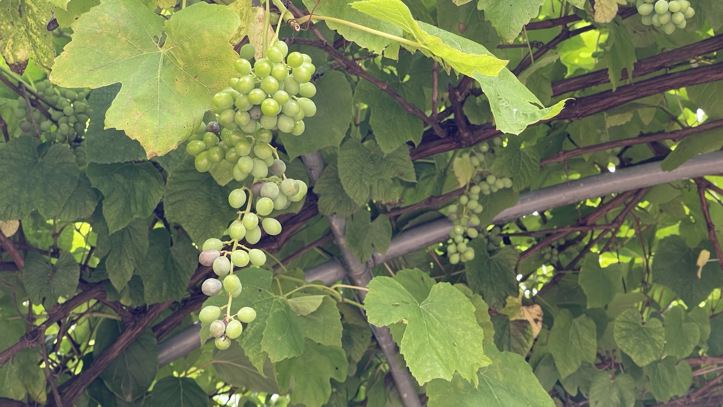 식물덩굴원에는 탐스러운 포도알이 탱글탱글 자라나고 있습니다.