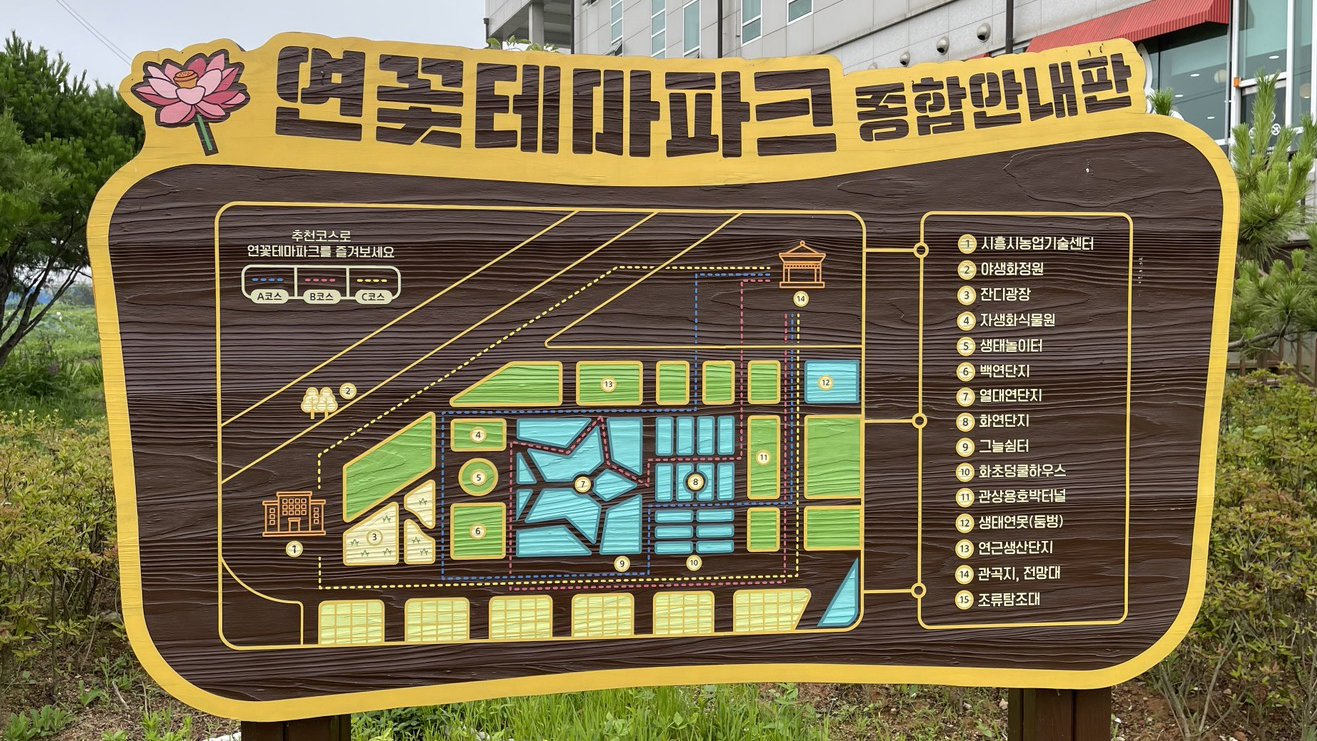연꽃테마파크는 야생화정원, 잔디광장, 자생화식물원, 생태놀이터, 백연단지, 열대연단지, 화초덩쿨하우스, 생태연못 등 다양한 테마로 조성되어 있습니다.