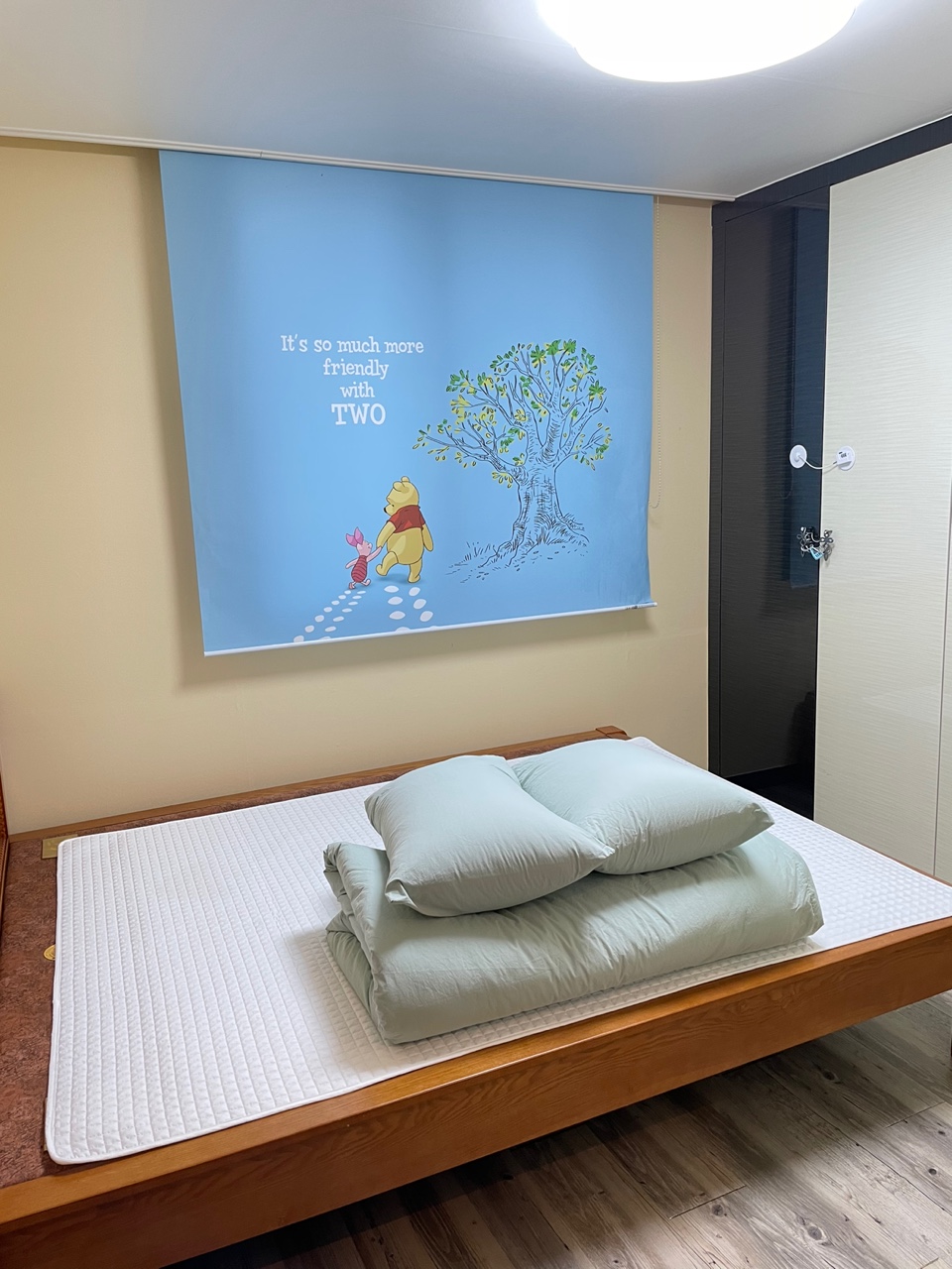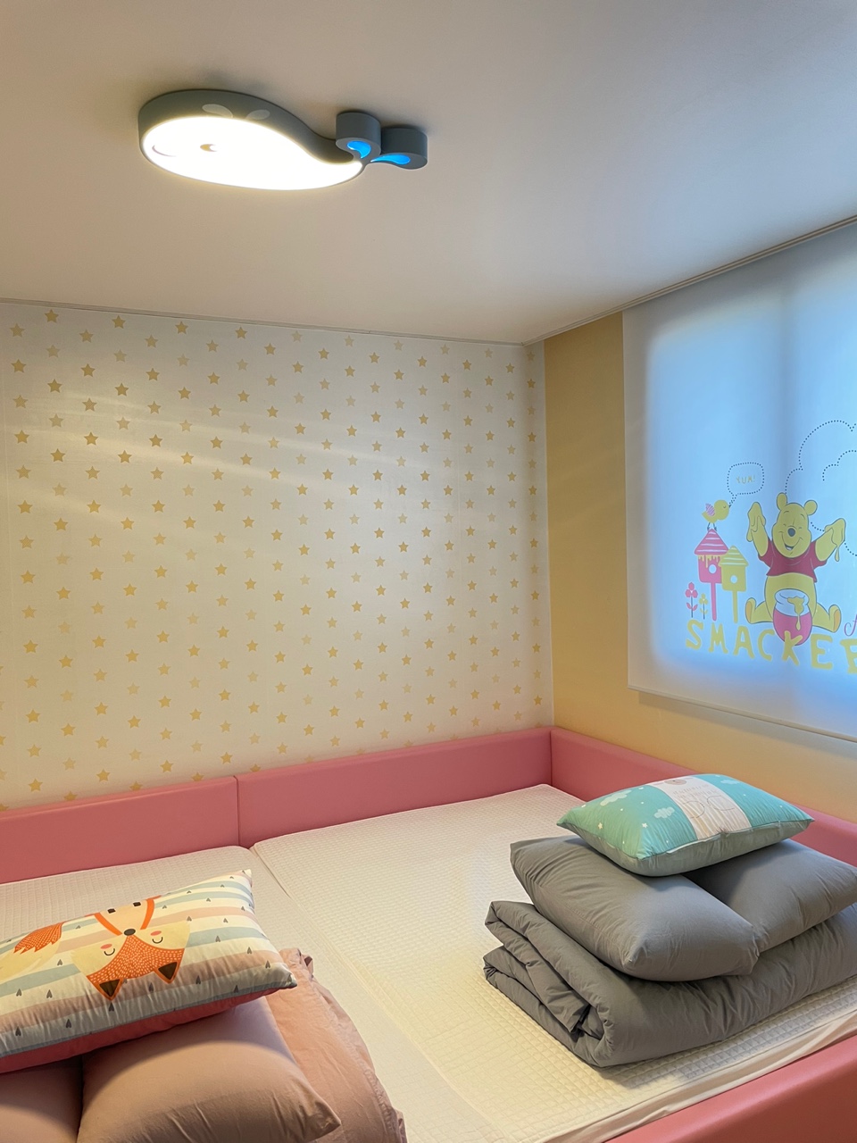 침실은 두 군데인데, 한 곳에는 돌침대가 놓여있고 다른 한 곳에는 넓직한 저상 침대가 마련되어 있어, 아이들 뒹굴뒹굴 하면서 잠자기 좋았습니다.
