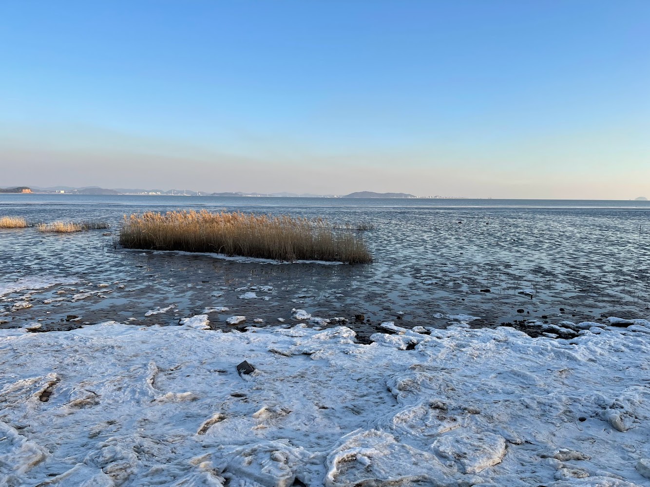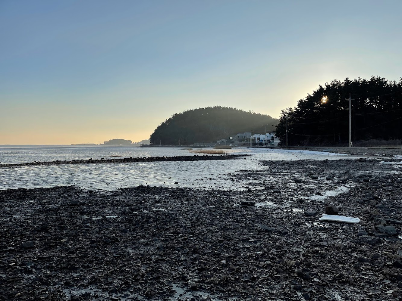 낮에 도착했을 때는 물이 빠져서 갯벌이 펼쳐져 있었는데, 저녁 산책할 즈음에는 바닷물이 많이 들어와 있었습니다.