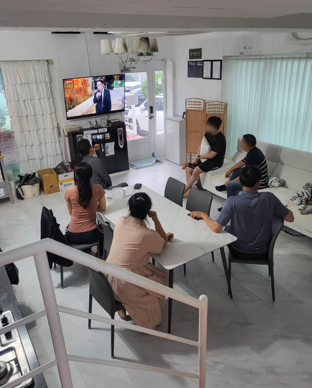 - 거실 한가운데 식탁이 있어서 술 한잔 하면서 노래방 즐기기 좋았어요.