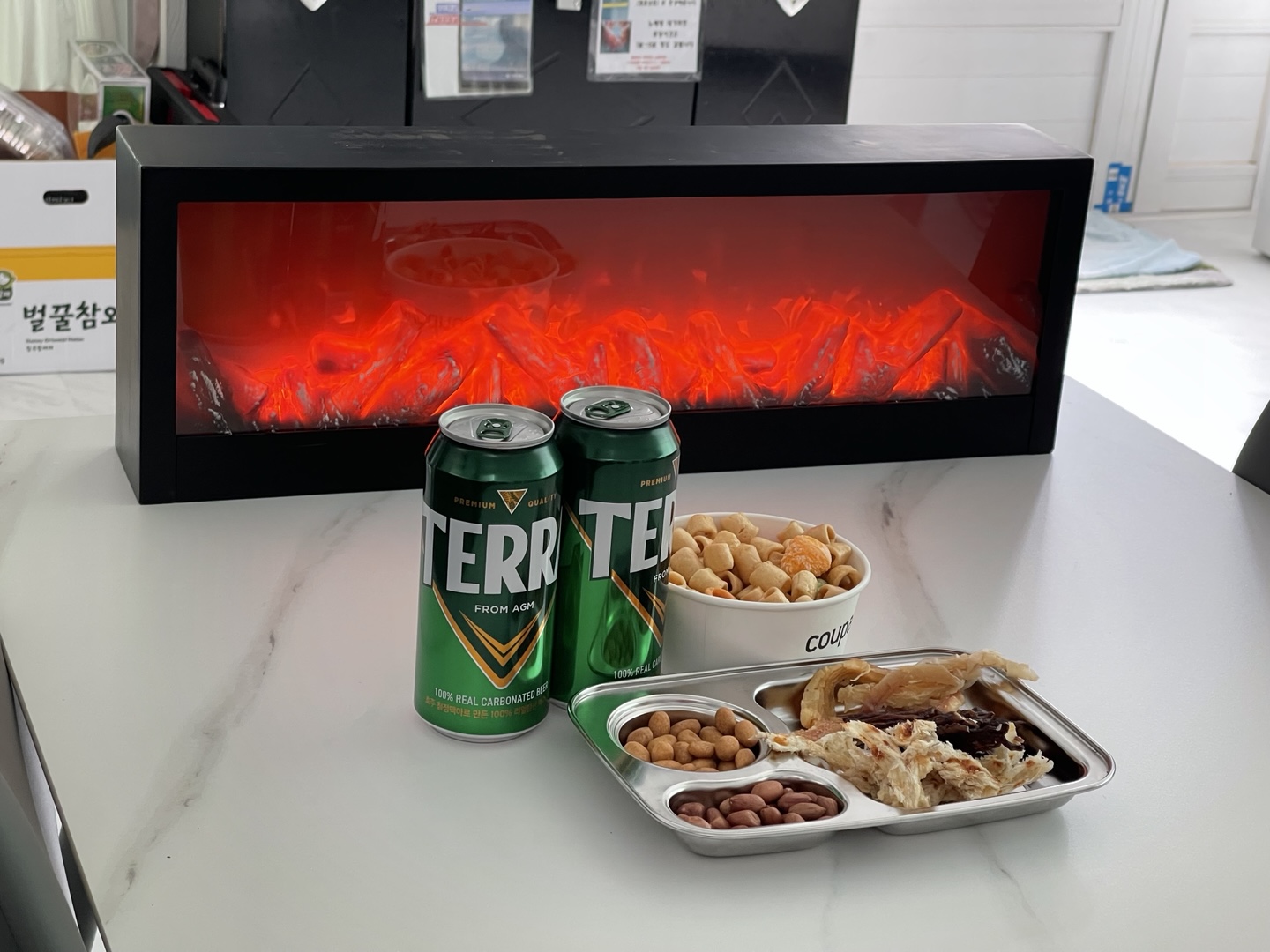노래하는데 맥주랑 안주가 빠지면 왠지 서운하죠?ㅎㅎ 불멍은 분위기 낸다고 집에서 따로 챙겨온 거에요.^^