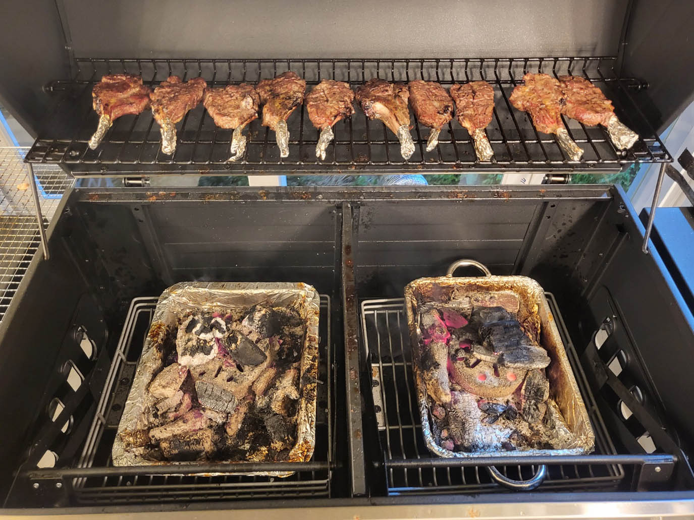 바베큐기계 이용해 봤는데요. 처음에 숯불에 불 붙일 때는 실내에 연기가 차서 눈이 좀 매웠어요. 잠깐 환기시키고 숯불에 완전히 불이 붙으니 금방 괜찮아졌습니다.