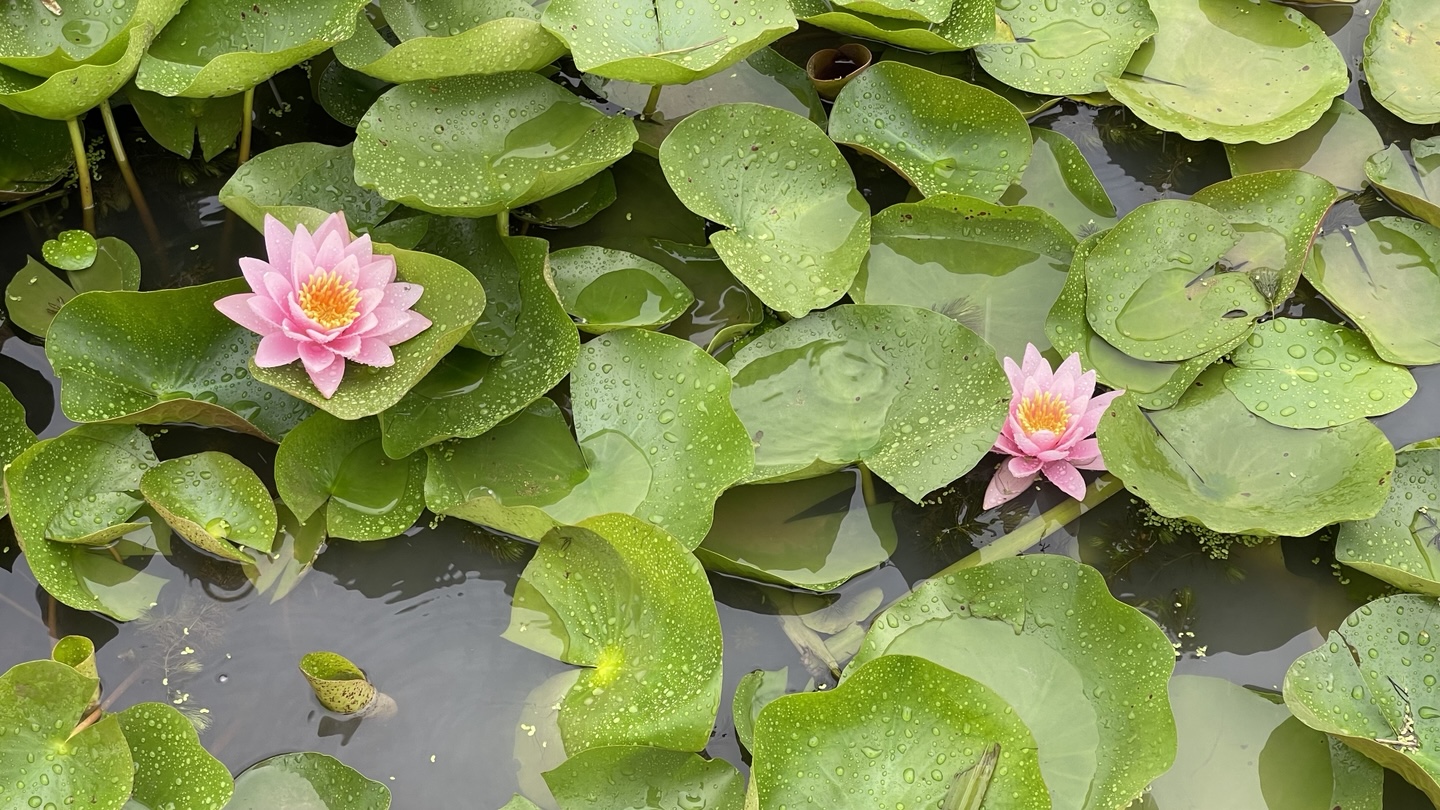 아쉬웠던 점은, 굵은 빗방울 무게 때문에 연꽃들이 축 늘어져 버렸다는 거에요. 연꽃의 우아한 자태를 제대로 즐기지 못해 아쉬웠어요. 반대로 빗 속의 수련은 더 아름다웠습니다.