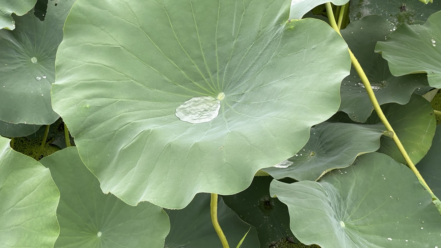 아쉬웠던 점은, 굵은 빗방울 무게 때문에 연꽃들이 축 늘어져 버렸다는 거에요. 연꽃의 우아한 자태를 제대로 즐기지 못해 아쉬웠어요. 반대로 빗 속의 수련은 더 아름다웠습니다.