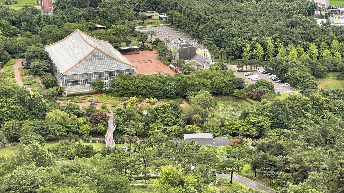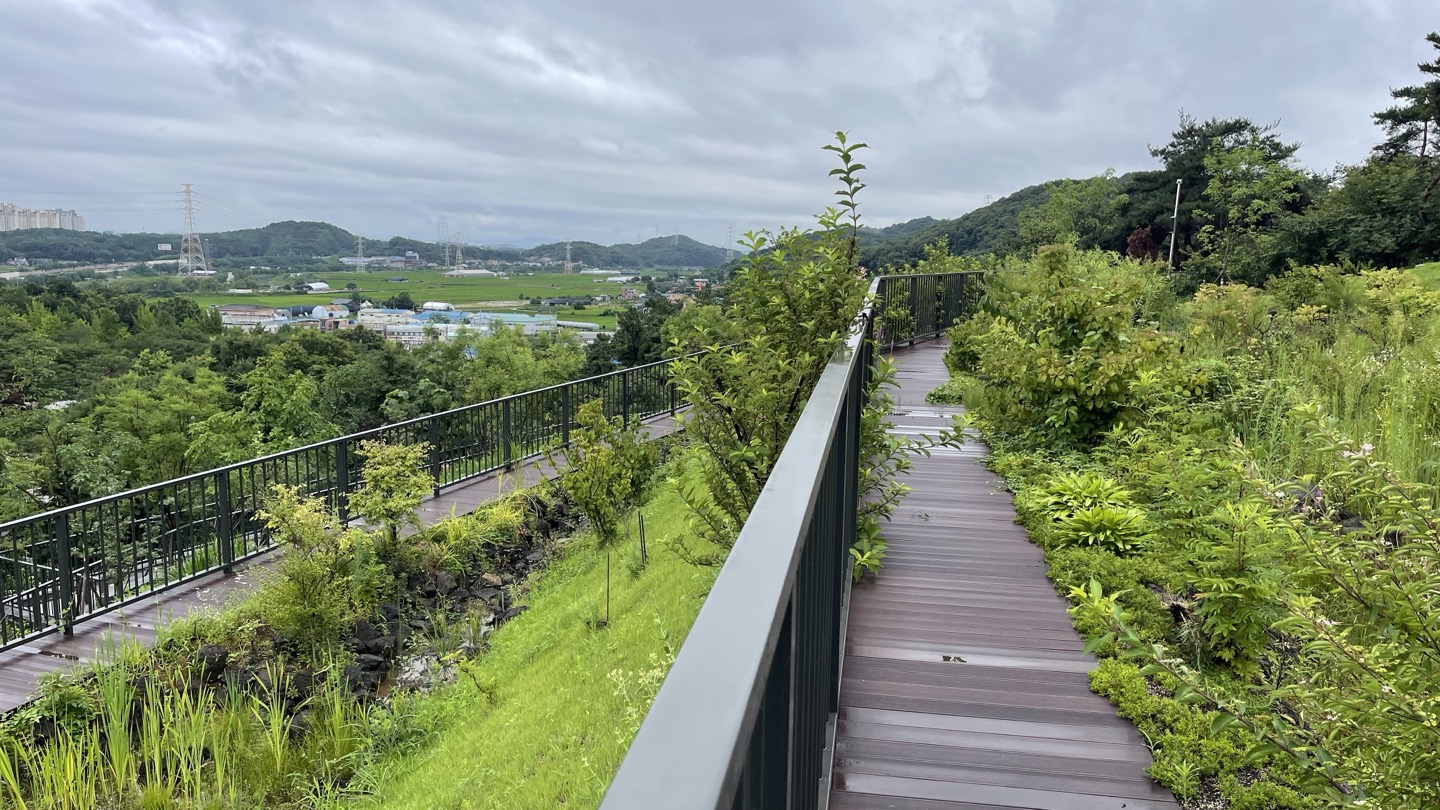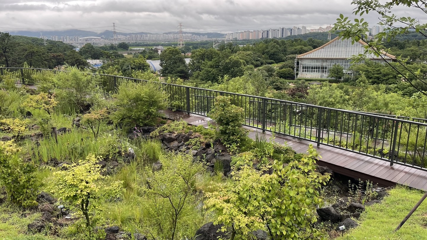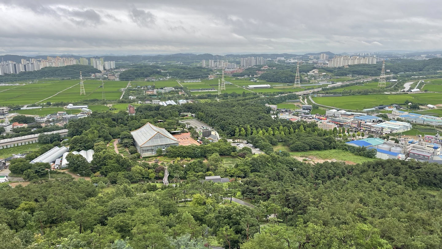 비 온 뒤라 그런지 시야가 정말 깨끗하게 열려 있었고, 화성 시내 전경과 식물원 모습이 한눈에 들어옵니다.