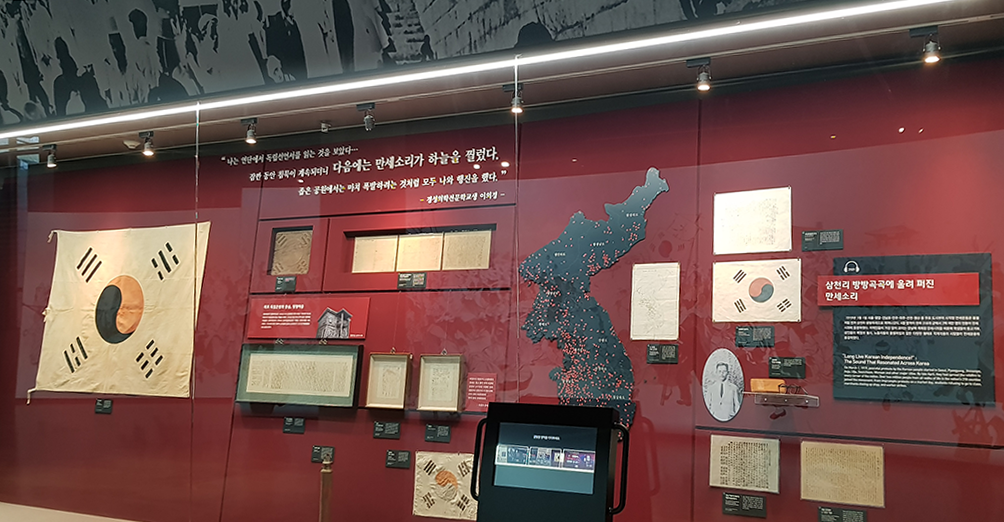- 제6전시관 ‘새로운 나라’ – 대한민국 임시정부의 활동을 살펴보고, 대한민국 임시정부의 역사적 경험들이 광복 이후 대한민국 정부로 이어졌음을 알아볼 수 있는 전시관입니다.