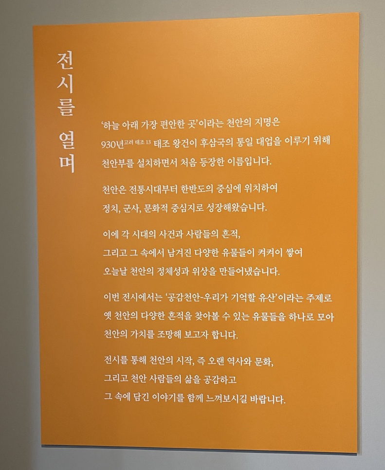이번 방문 때 천안박물관 기획전시실에서는 '공감 천안:우리가 기억할 유산'이라는 주제로 기획전시를 진행하고 있었습니다.