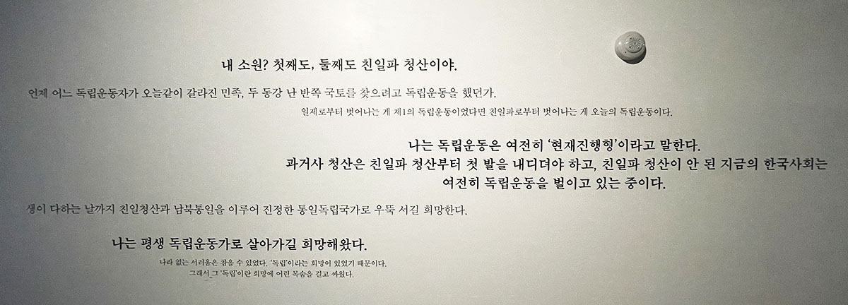 과거의 비극과 독립의 염원을 기억하며 미래 세대에게 올바른 역사 인식을 전하고자 마련된 이 기념관은, 입구에 들어서는 순간부터 건물 전체가 주는 첫인상이 꽤 인상적이었는데요. 특히 외벽과 내부 곳곳에 사용된 파쇄석 덕분에 통일감 있는 분위기가 연출되어, 마치 하나의 거대한 역사 기념물 안으로 들어가는 느낌이 들었습니다.