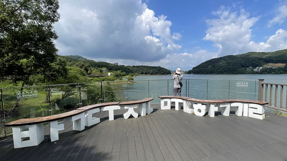 호숫바람을 맞으며 쉬어가기 좋은 포인트로, 물빛과 산그늘이 겹쳐지는 뷰가 특히 아름답습니다.