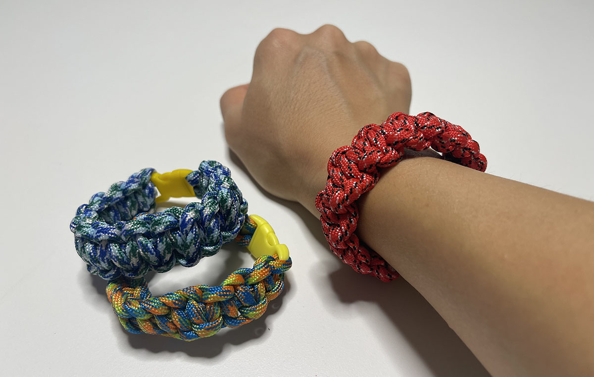 파라코드(paracord) 팔찌는 원래 군용 낙하산 줄을 활용해 만든 생존 팔찌로, 야외 활동이나 캠핑, 등산에서 유용하게 쓰이는 아이템입니다. 이번 해양스포츠대전 부대 행사 중 하나로 ‘팔라코드 팔찌 만들기’ 체험 부스가 운영되고 있었어요.