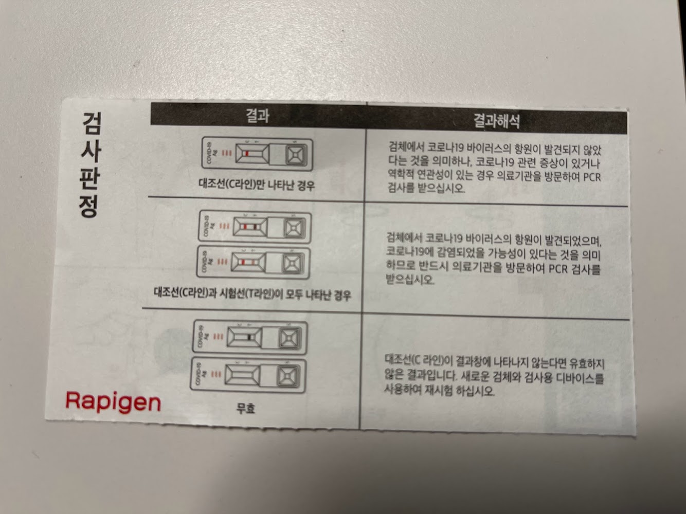 설명서를 보고 결과를 해석한 후, 양성이 나왔을 경우 선별검사소를 방문하여 PCR 검사를 추가로 받으면 되는데, 저 같은 경우는 다행히 음성이 나왔습니다.