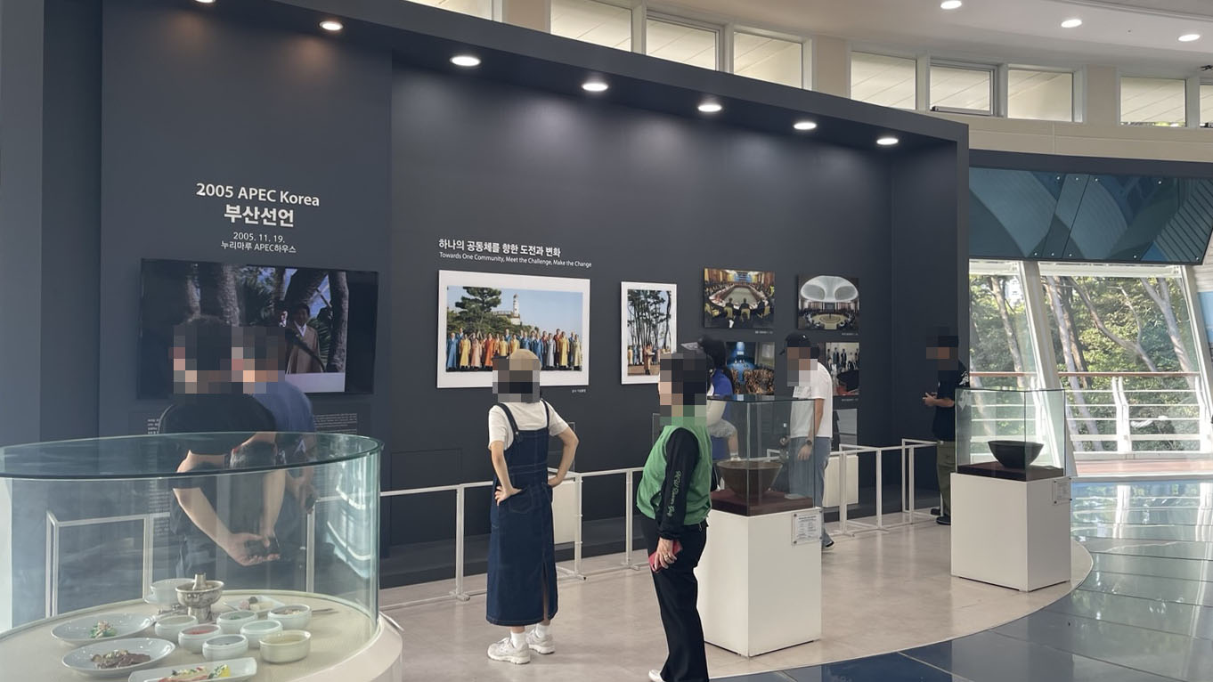 건물 내부에는 당시 회의 장면과 각국 정상들의 기념사진, 그리고 부산을 대표하는 문화 전시물이 마련되어 있습니다.