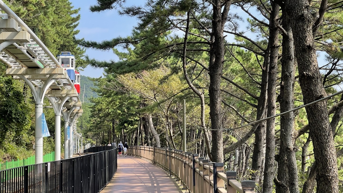 - 해안선을 따라 지상 7~10m 높이의 공중 레일 위를 자동으로 운행하는 낭만적인 모노레일 캡슐입니다.