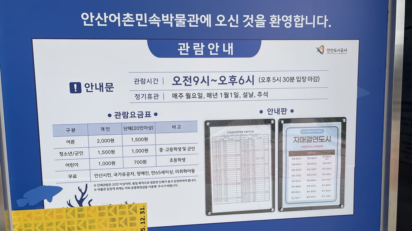 - 무료 대상: 국가유공자 / 장애인 / 미취학 아동 / 만 65세 이상 / 안산 시민 및 자매결연도시 시민
