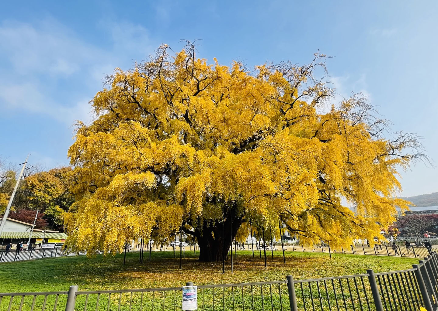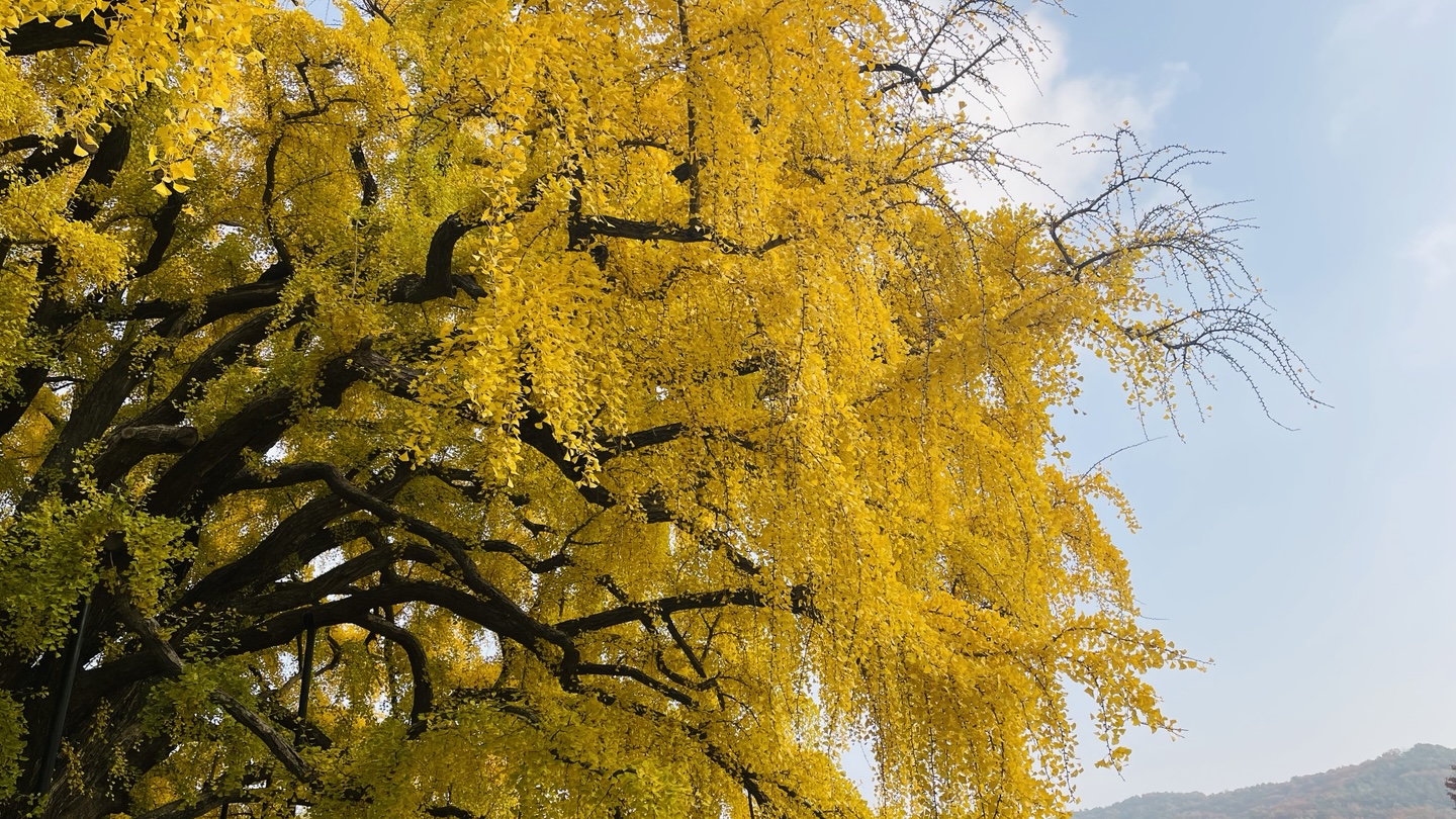 가을이 되면 온몸을 황금빛으로 물들이며 장엄한 아름다움을 뽐내는 거목을 실제로 마주하니, 그 위용에 저절로 감탄이 나왔습니다.