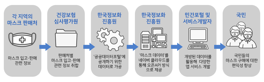 과학기술정보통신부, 행정안전부, 보건복지부, 중소벤처기업부는 10일 정부서울청사에서 브리핑을 열어 한국정보화진흥원, 건강보험심사평가원과 협력해 공적 마스크 판매 데이터를 민간기업 등에 제공한다고 밝혔습니다.