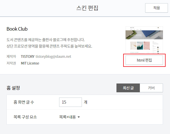 7. 스킨 편집 > html 편집