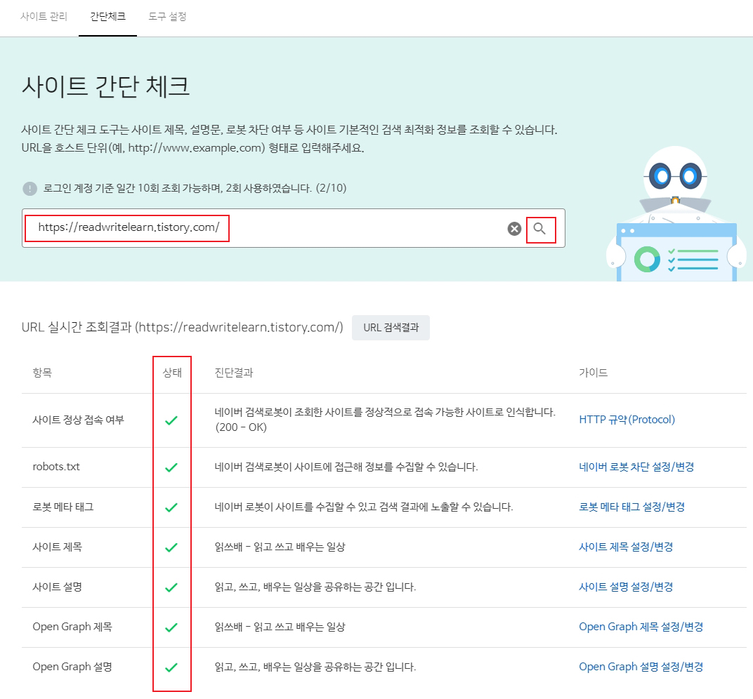 2. 웹마스터 도구 > 간편체크