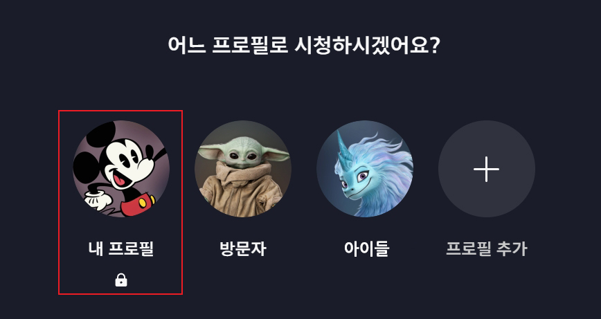 디즈니 플러스 콘텐츠 중 아이들이 보기엔 적절치 않은 컨텐츠들이 있어, 어른들과 아이들이 별도의 계정을 만들어 사용하고 있습니다.