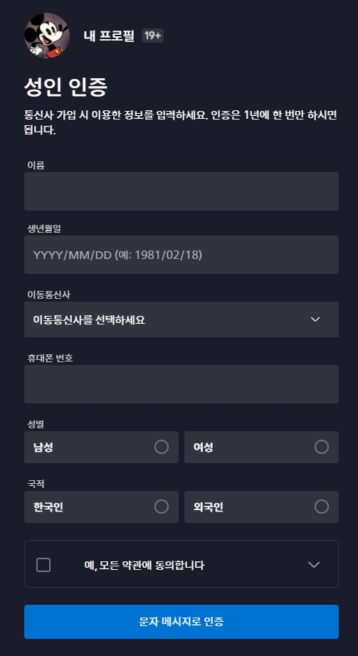 1. 아래의 주소로 접속합니다. (디즈니 플러스 연령 인증 페이지)