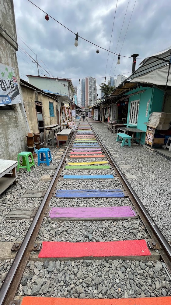 마을 한가운데에 철길이 그대로 남아있어 마치 영화 세트장을 보는 듯한 느낌입니다.