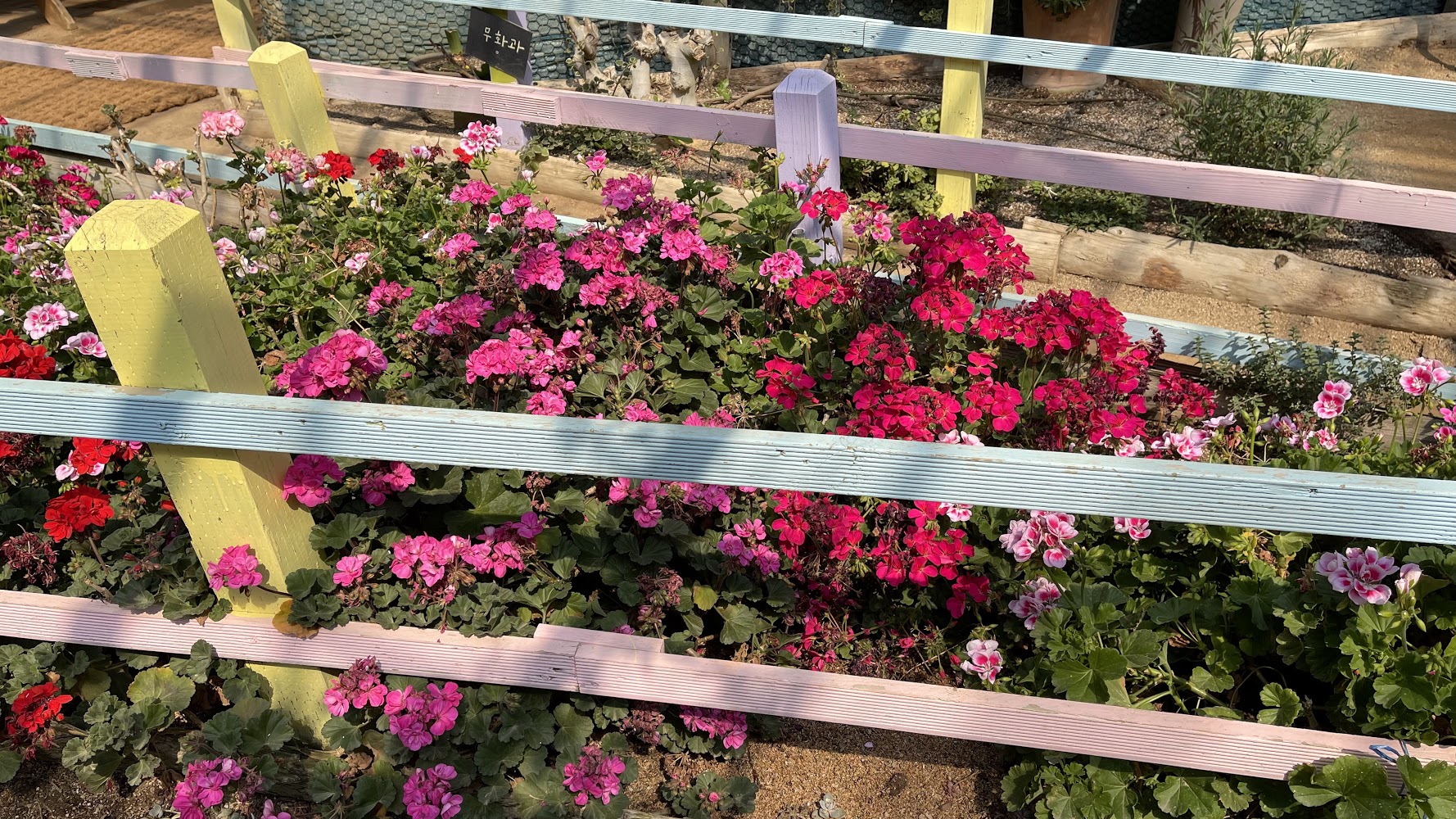 다양한 허브 식물과 꽃나무들이 있어서 눈과 코가 즐거워집니다.