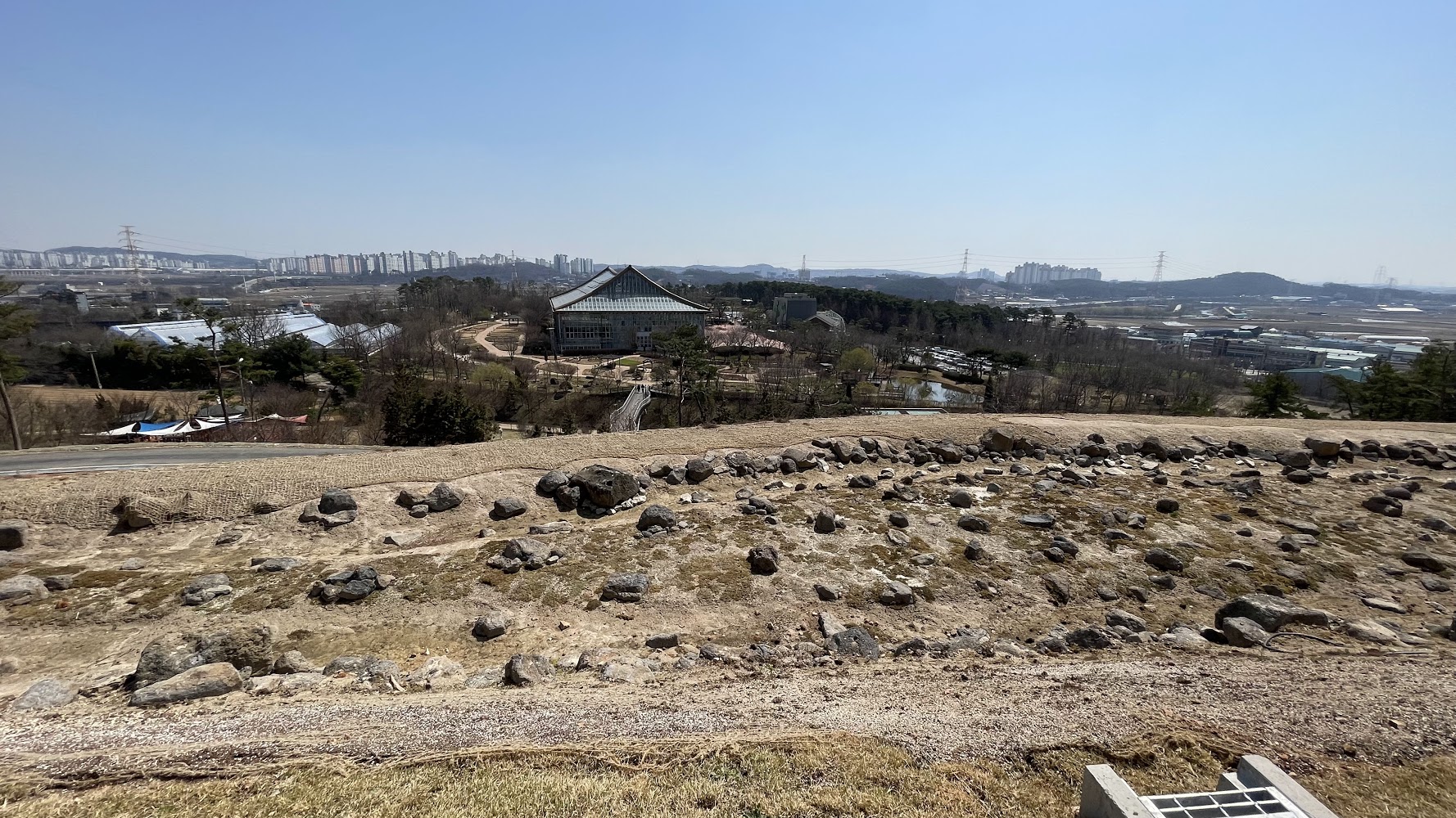 등고산 산책로를 따라 조금 올라가다 찍은 사진입니다. 경사로를 따라 나무도 심고 화단도 꾸밀 계획인 것 같습니다.