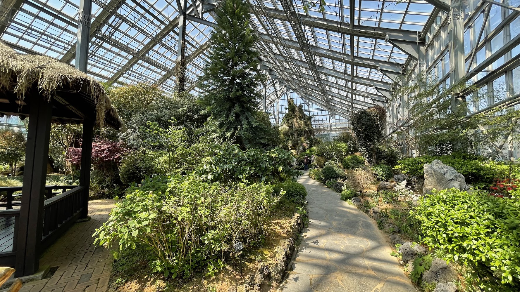 전시관들은 건너뛰고 유리 온실로 향했습니다.