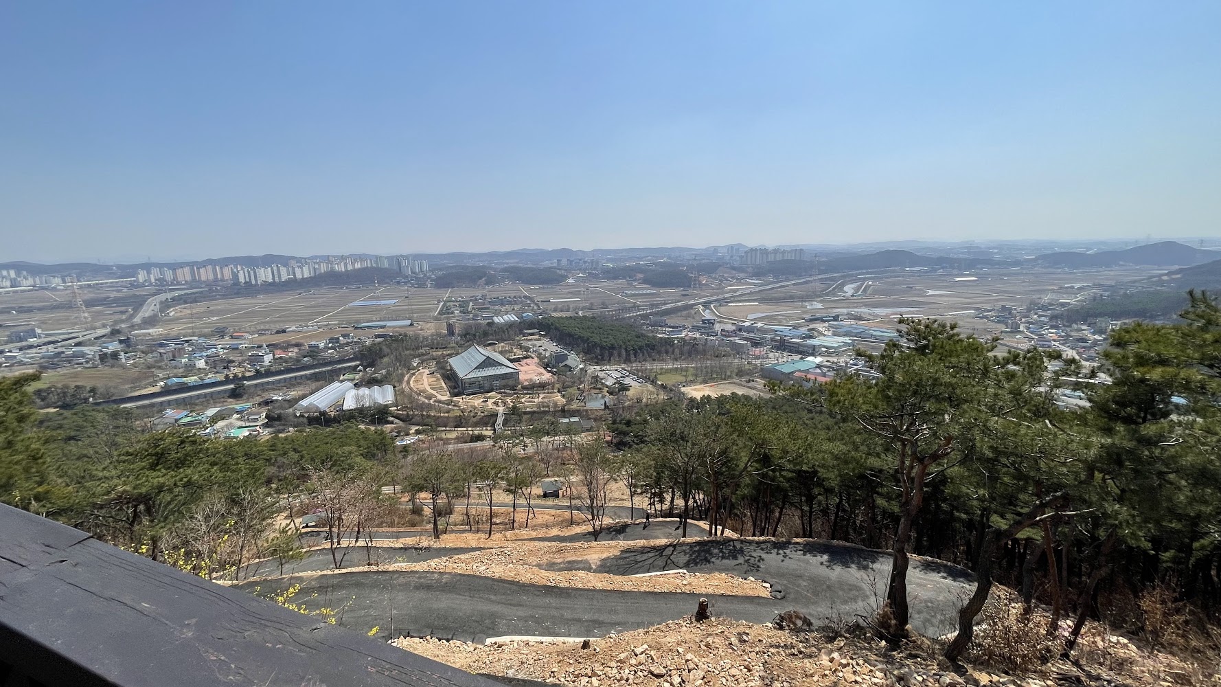 산의 한쪽을 밀고 지그재그 모양의 산책로를 새로 조성하는 중입니다. 새단장 중이지만 등산은 가능합니다.