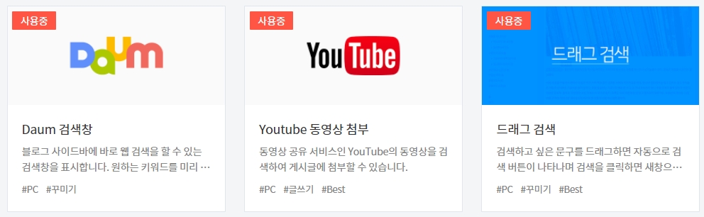 3. 글쓰기 화면 > 더보기 > 플러그인 > Youtube 동영상 첨부