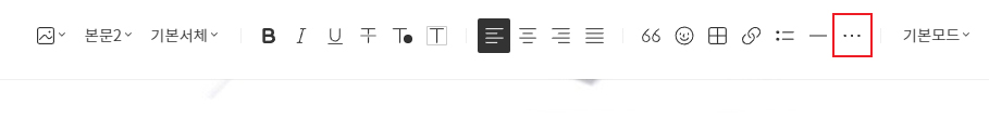 글쓰기 화면의 상단에 보면 점 3개로 표시된 '더보기' 기능이 있습니다.
